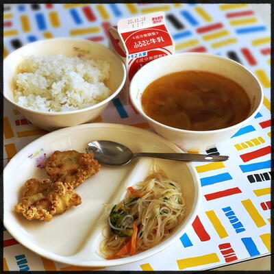 ごはん 牛カルビクッパ アジフリッター リャンパンサンスー 牛乳