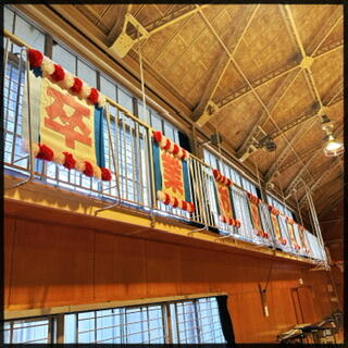 本日午後に行われる6年生を送る会に向けて、下級生の作品が会場に飾られました。本番に向けて最後のリハーサルです。