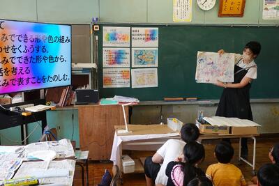 「にじんで広がる ものがたり」では、「ぼかし」の表現から表したいことを考え、作品づくりをしています。