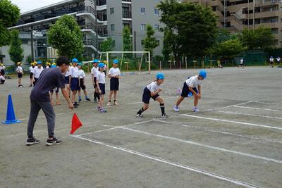 散歩のようですが、3年生の算数「長い長さをはかって表そう」で、1kmを歩いてかかった時間や歩数を調べ、その長さを体感する学習を行いました。