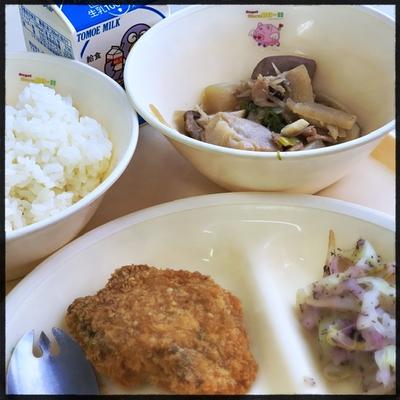 ごはん カツオごまフライ ゆかり和え 芋煮 牛乳