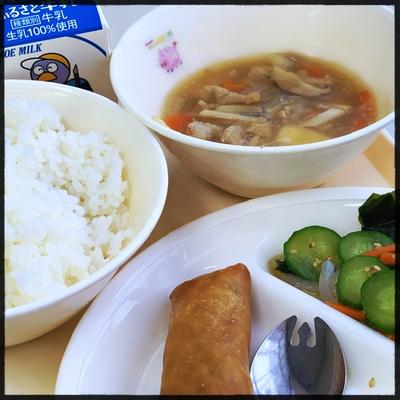 中華あんかけ丼 春巻き こんにゃくサラダ(しそドレッシング) 牛乳