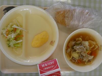 全世代で好きな給食トップ3に入る「揚げパン」でした。しかも、きなこ。ごぼうサラダもおいしかったです。ごぼう、おいしいのに、他の国ではあまり食べないようですね。