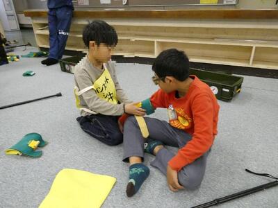 4年生の総合の学習で高齢者疑似体験を行いました。