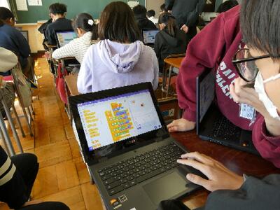 6年生はプログラミングでゲームづくりにチャレンジしていました。