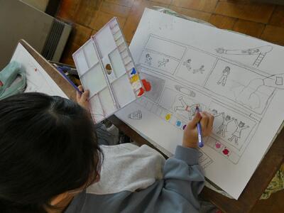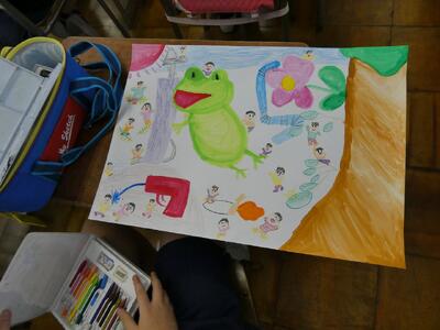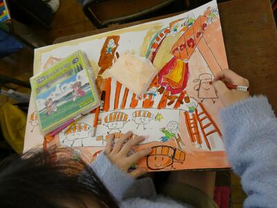 0129 ガリバートンネル 投稿: KCH (12:47) 4年生の図工で「小さくなって 遊びにいこう」に取り組みました。 小さくなったらどんなことをして遊べるか、想像を膨らませて絵に表しました。 豊かな発想で、表現しました。 身の周りから、遊べそうなものを探して考えました。 大好きなサーモンで、サーモンワールド! いろんな遊びを思いついて表現していました。 Tweet -