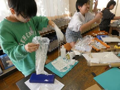 0202 「白」のイメージは? 投稿: KCH (13:57) 「白」と聞くとどんなイメージを持ちますか? 自分は雪の降る地域の出身なので、真っ白の世界と聞くと、とてもきれいで静かな感じを想像します。 6年生の図工では、「白くなったら見える世界」に取り組んでいます。 今日はまず材料をすべて白くしました。次回、工夫しながら組み立てをします。どんな世界ができあがるのか楽しみです。 【今日の給食】 明日は節分メニューですね。 Tweet -