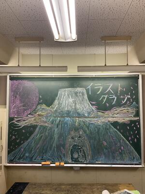 昨日、今年度最後のクラブ活動でした。イラストクラブは黒板に作品を完成させたようです。