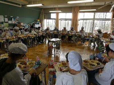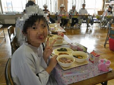0318 最後の昼餐 投稿: KCH (09:54) 今年度最後の給食でした。6年生にとっては小学校最後の給食です。 お母さん!映ったよ! お祝いメニューです。 1年間、おいしい給食を作って届けてくれた給食センターの皆さん、配膳員さん、ありがとうございました。 Tweet -