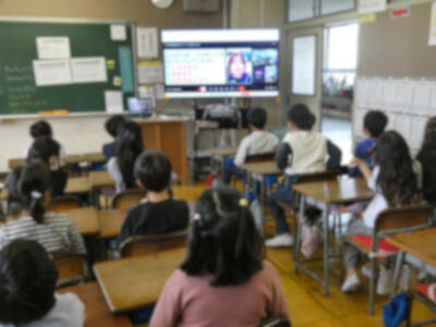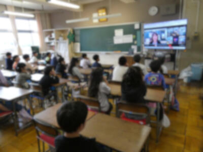 講話集会はオンラインのライブ配信で行われ、子供たちは各教室で校長先生のお話をしっかりと聞いていました。
